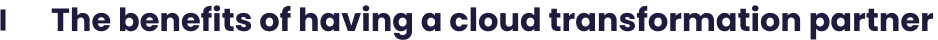 Cloud Transformation Consulting obtains transnational knowledge, learnings, and best practices to help you harness the benefits of cloud technology in line with your strategic goals.